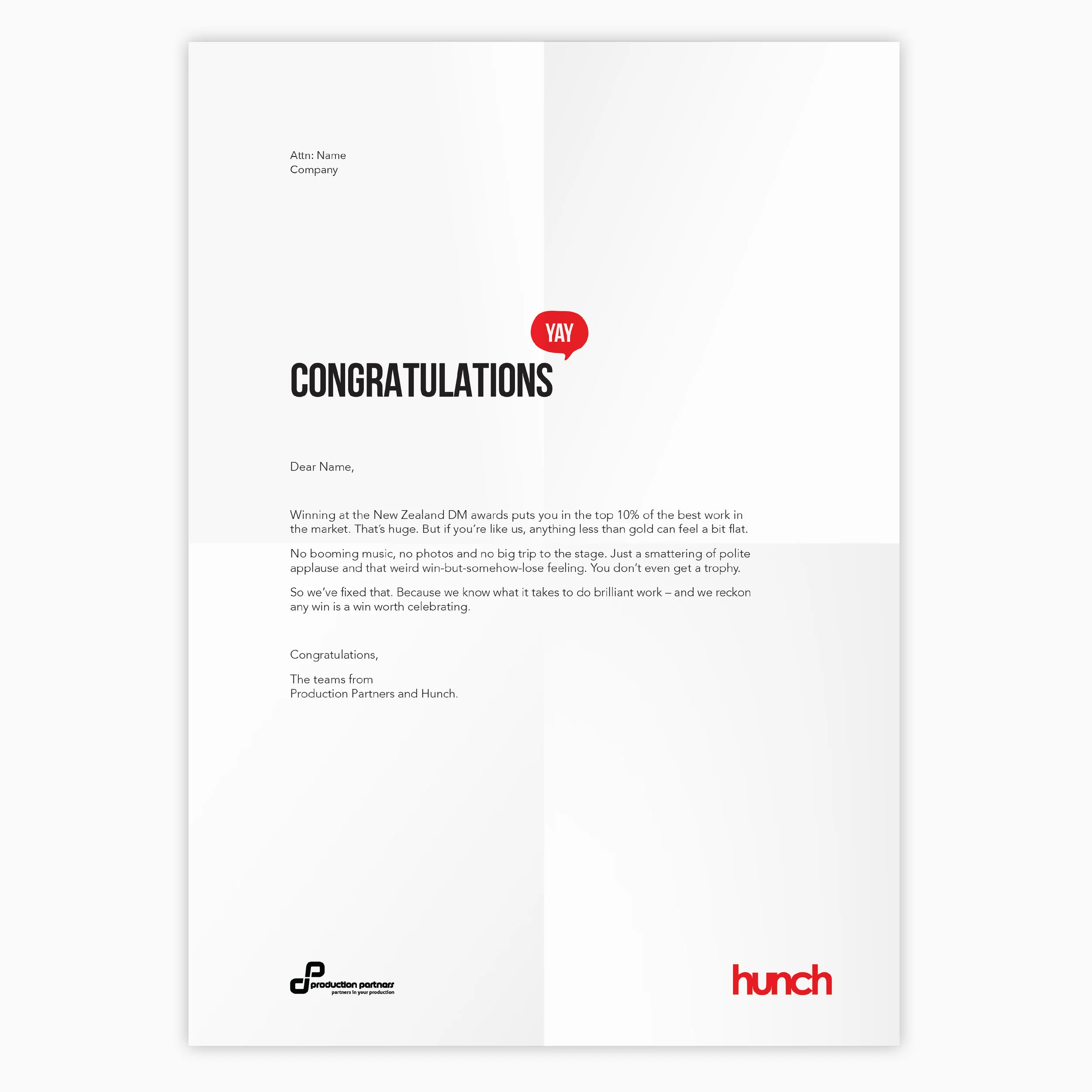 We sent a 'NOT-QUITE-GOLD' award out to every client who only won silver or bronze at the awards. It came with a note of congratulations, reminding them that any win is a win worth celebrating.